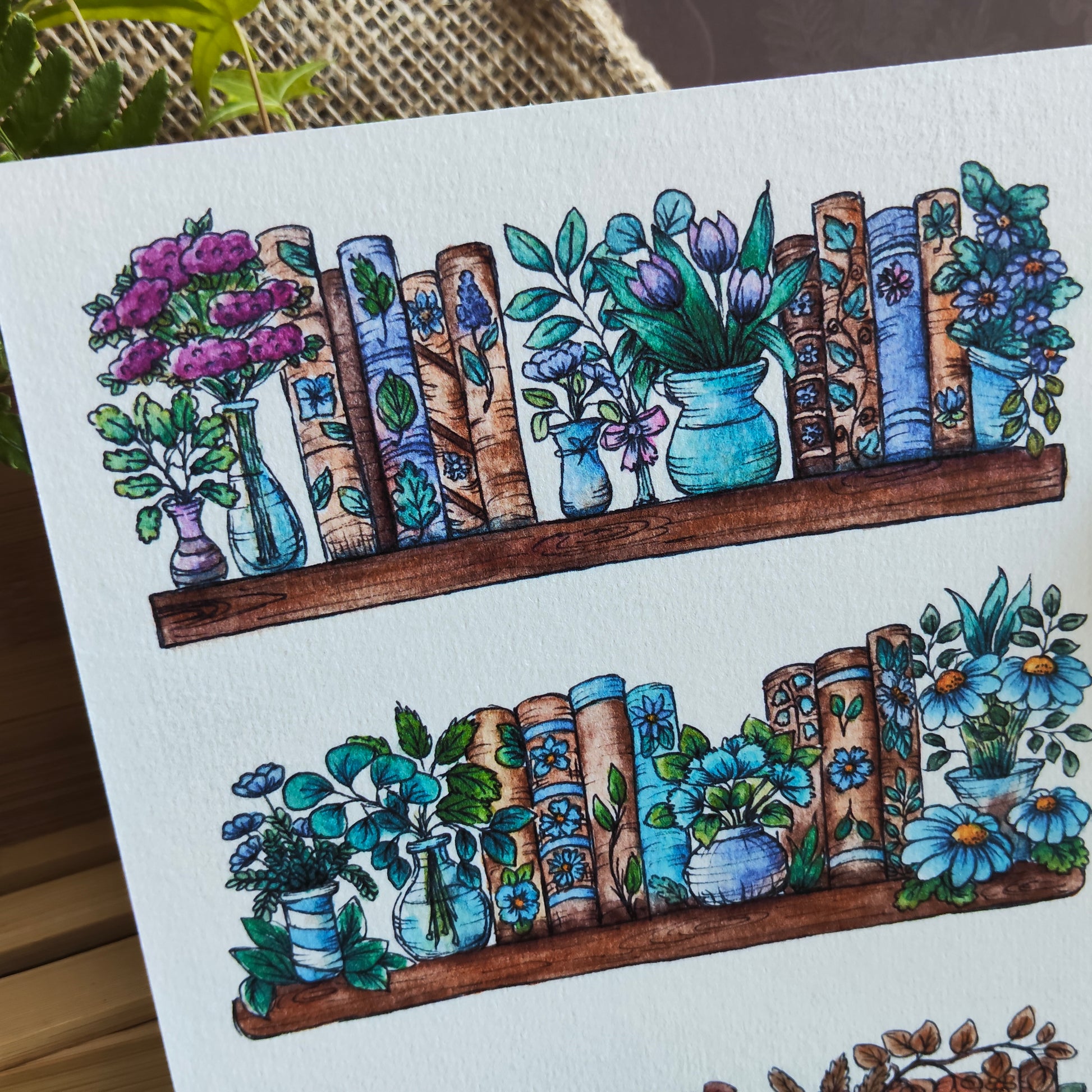 Affiche A5 Bibliothèque Botanique – Livres & Fleurs