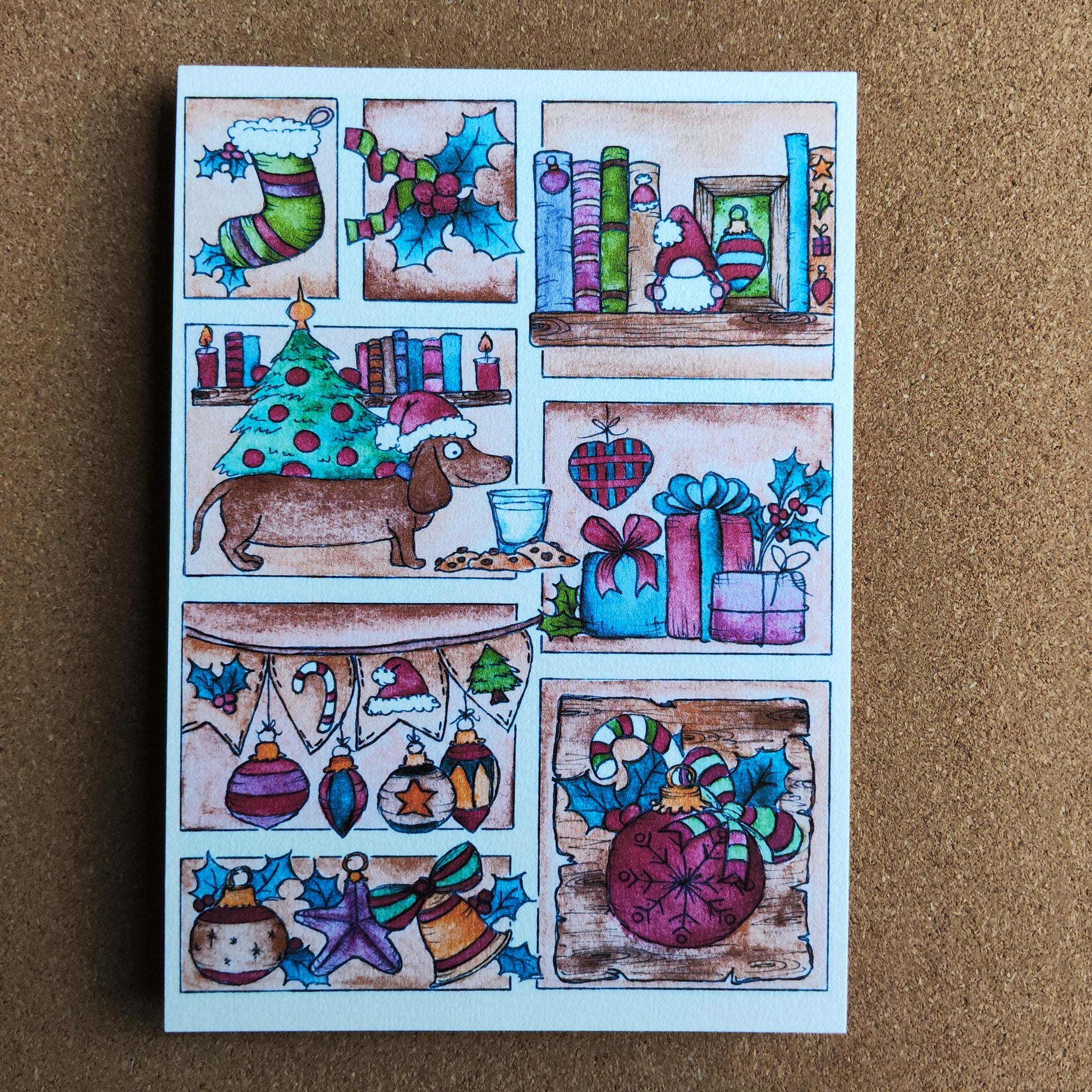 Affiche A5 Noël Ornement décoration maison Chien teckel