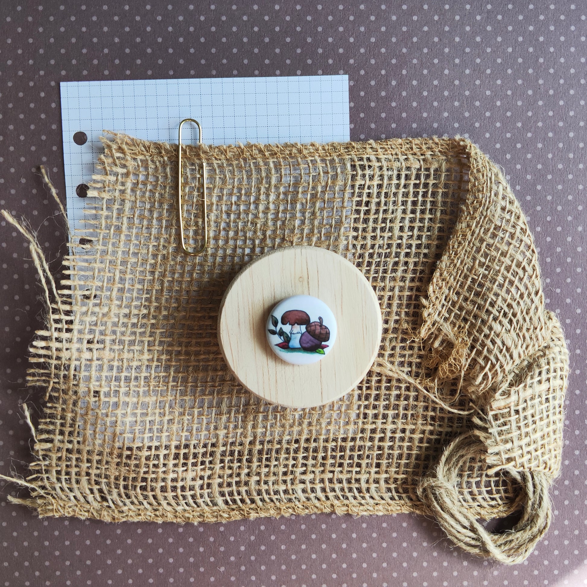 Badge motif d'un champignon cute et d'un petit gland. Saison Automne