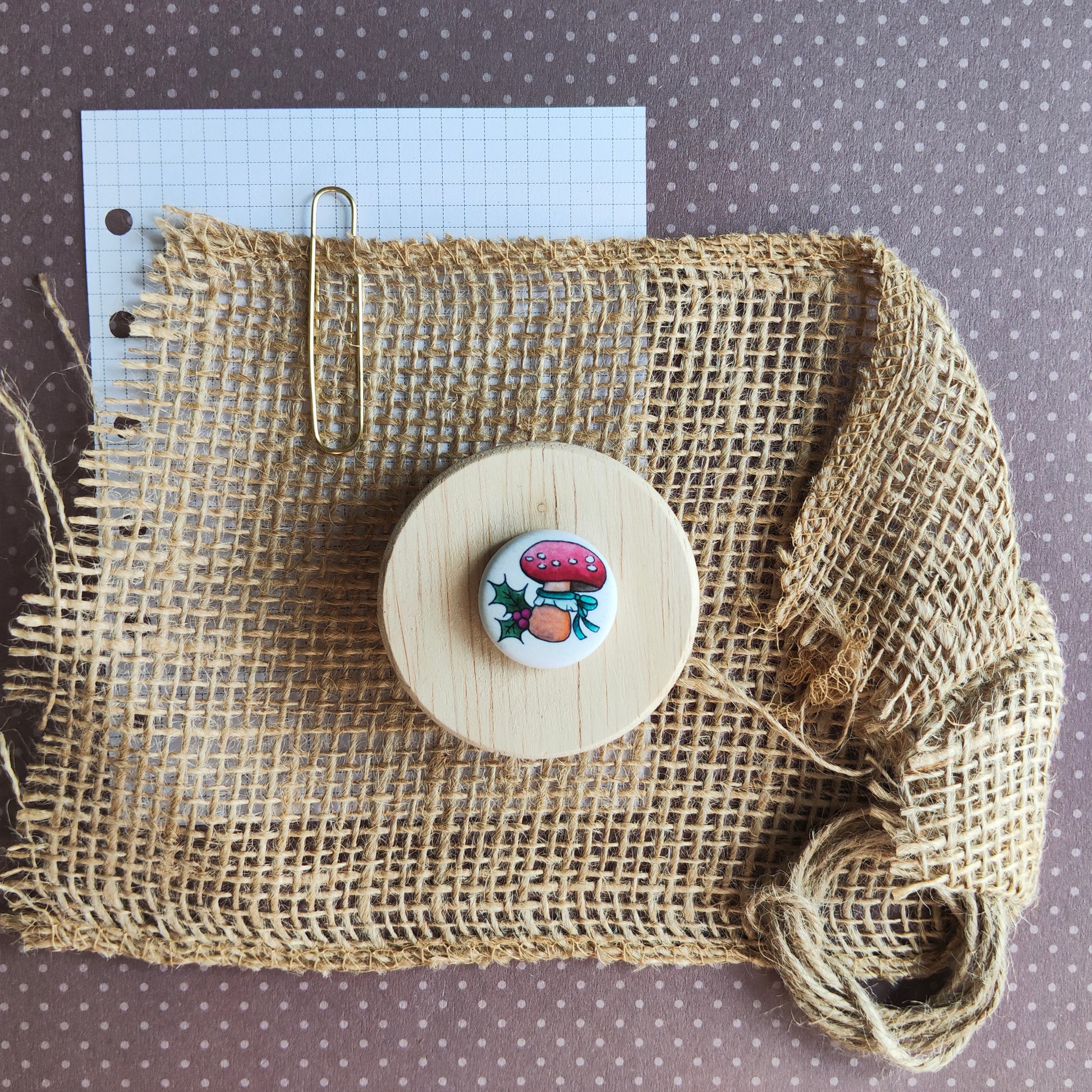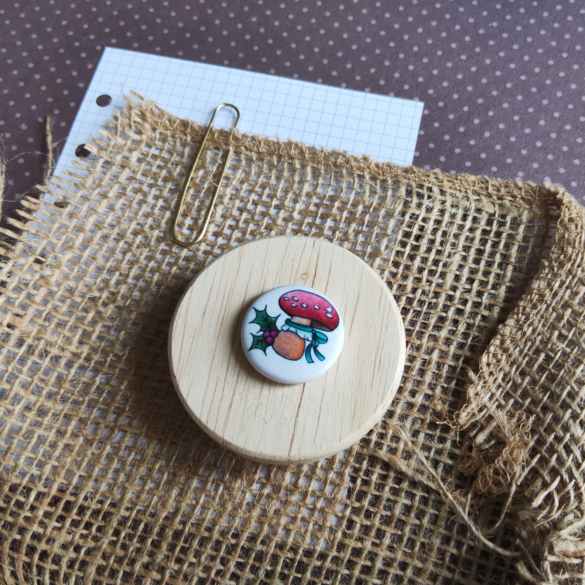 Badge motif d'un petit champignon de noël