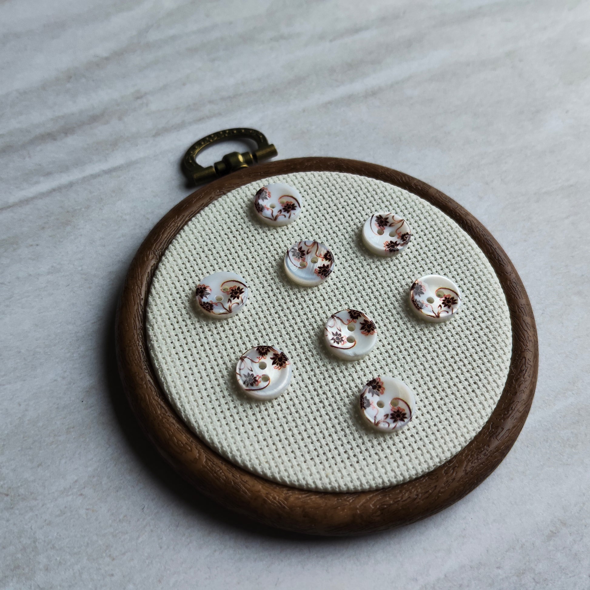 Boutons Rond blanc nacré motifs fleurs marron