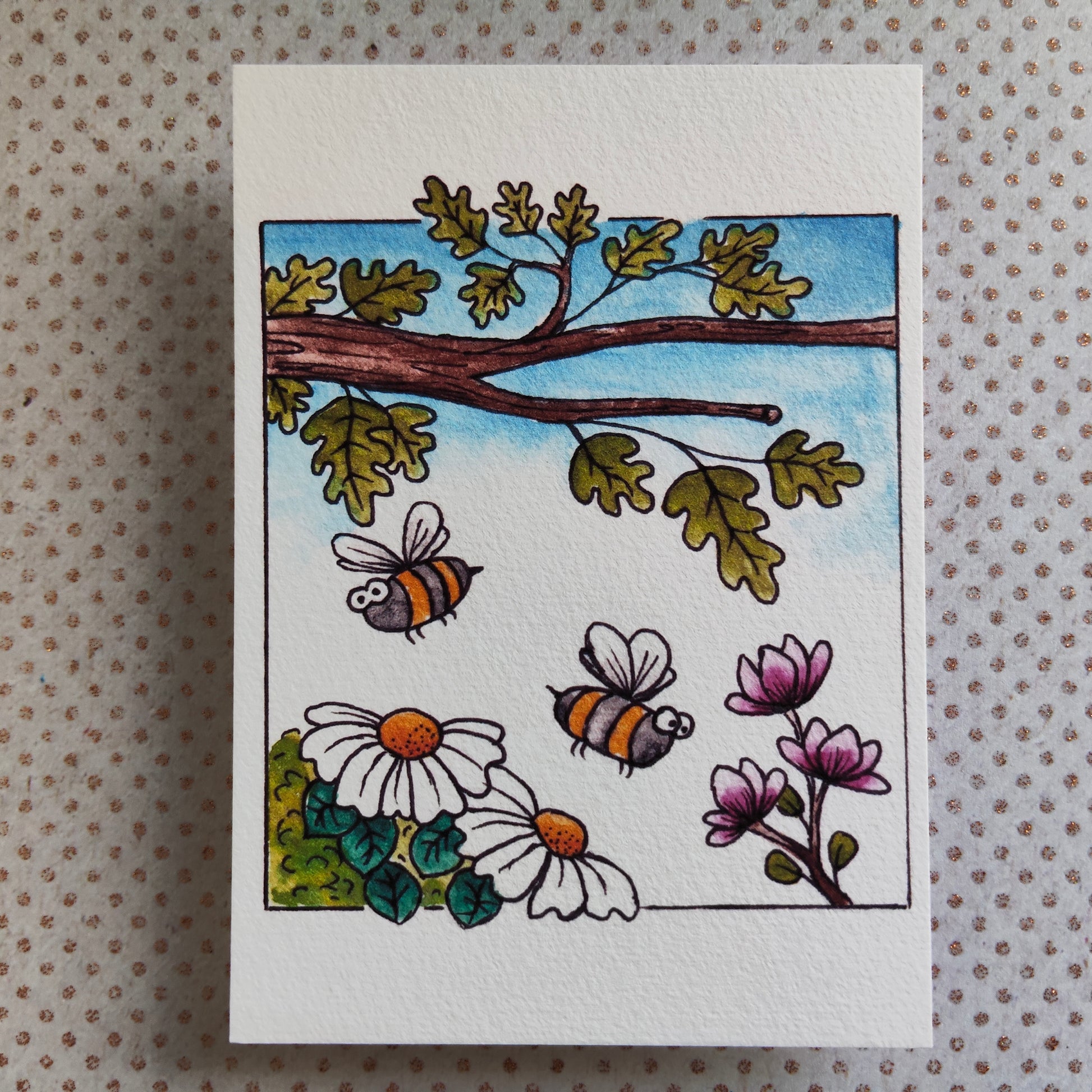 Carte Fleur et Abeille – Marguerite, Feuilles, Chêne et Nature