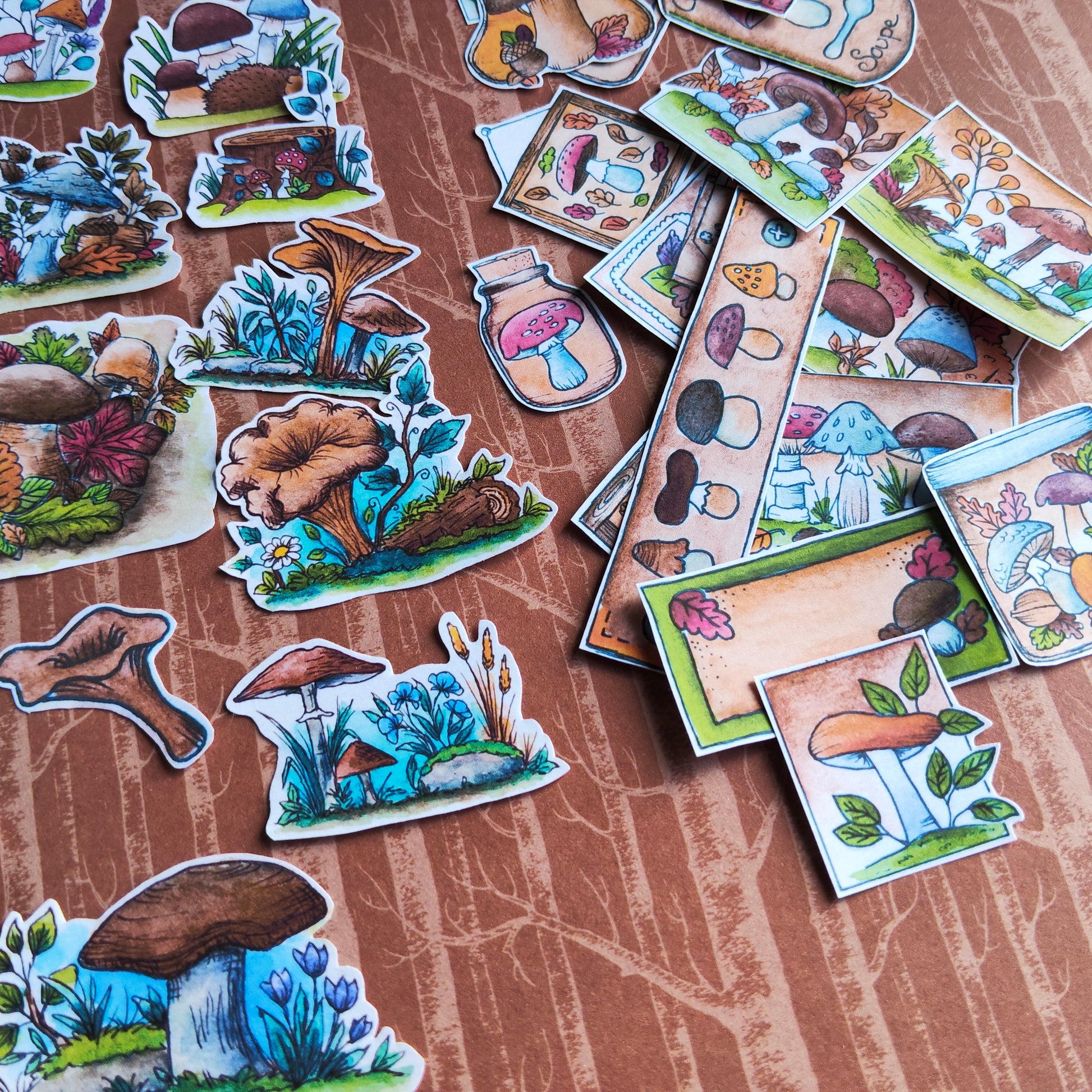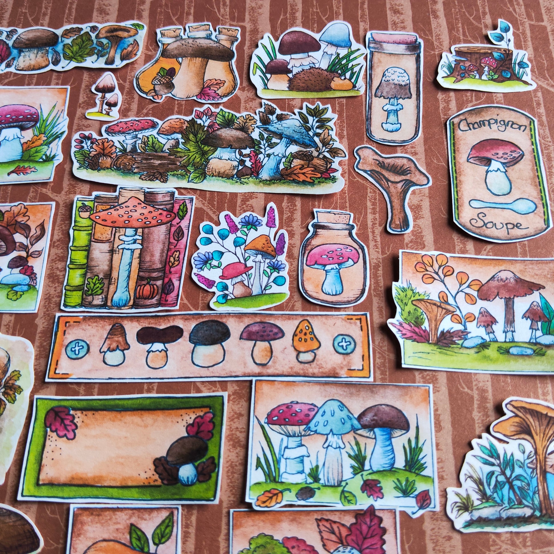 Stickers Champignon – autocollants illustration dessin peinture aquarelle - Saison Automne décoration journaling